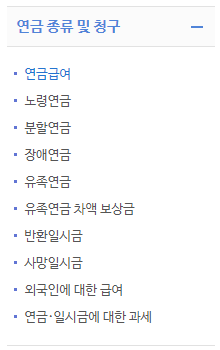 클릭을 하시면 국민연금의 종류를 확인하실 수가 있습니다.