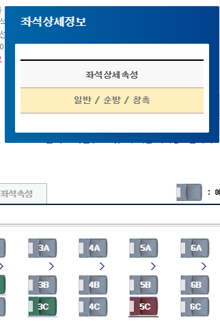 좌석을 선택하시면 이렇게 순방향인지, 창가인지를 확인하실 수 있습니다.